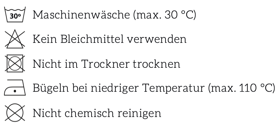Mit ähnlichen Farben waschen, Print nicht bügeln. Waschen und bügeln auf links.