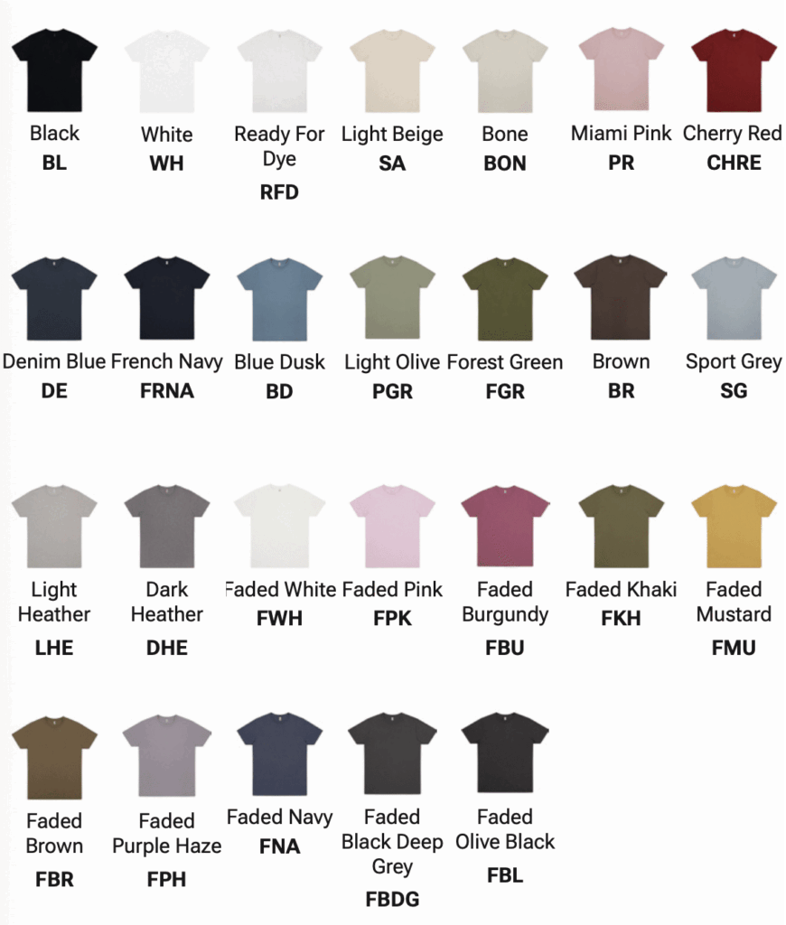 Das EP185 T-Shirt von EarthPositive ist in folgenden Farben erhältlich